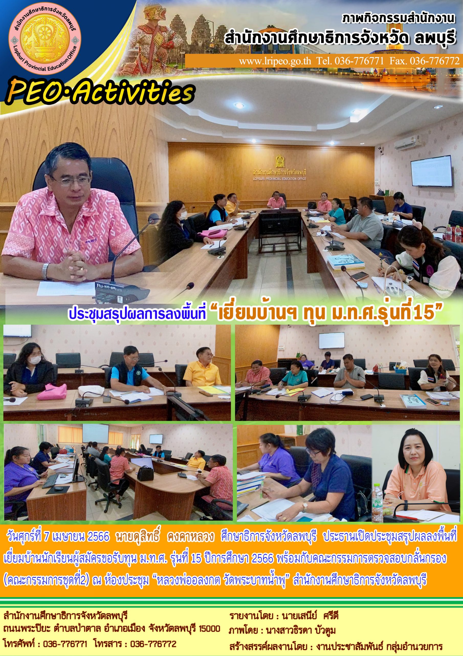 วันศุกร์ที่ 7 เมษายน 2566 นายดุสิทธิ์ คงคาหลวง ศึกษาธิการจังหวัดลพบุรี ประธานเปิดประชุมสรุปผลลงพื้นที่