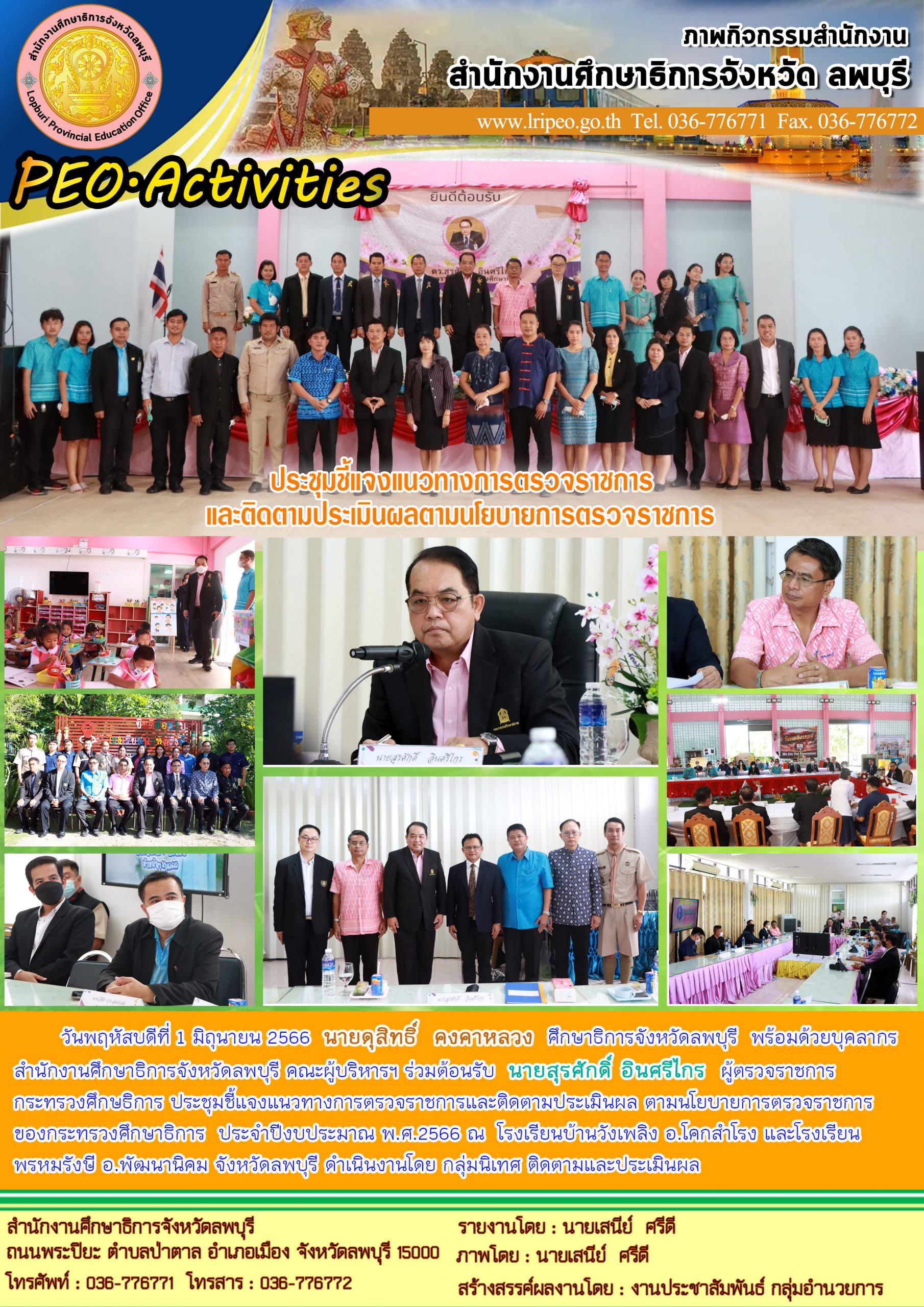 วันพฤหัสบดีที่ 1 มิถุนายน 2566 นายดุสิทธิ์ คงคาหลวง ศึกษาธิการจังหวัดลพบุรี พร้อมด้วยบุคลากร