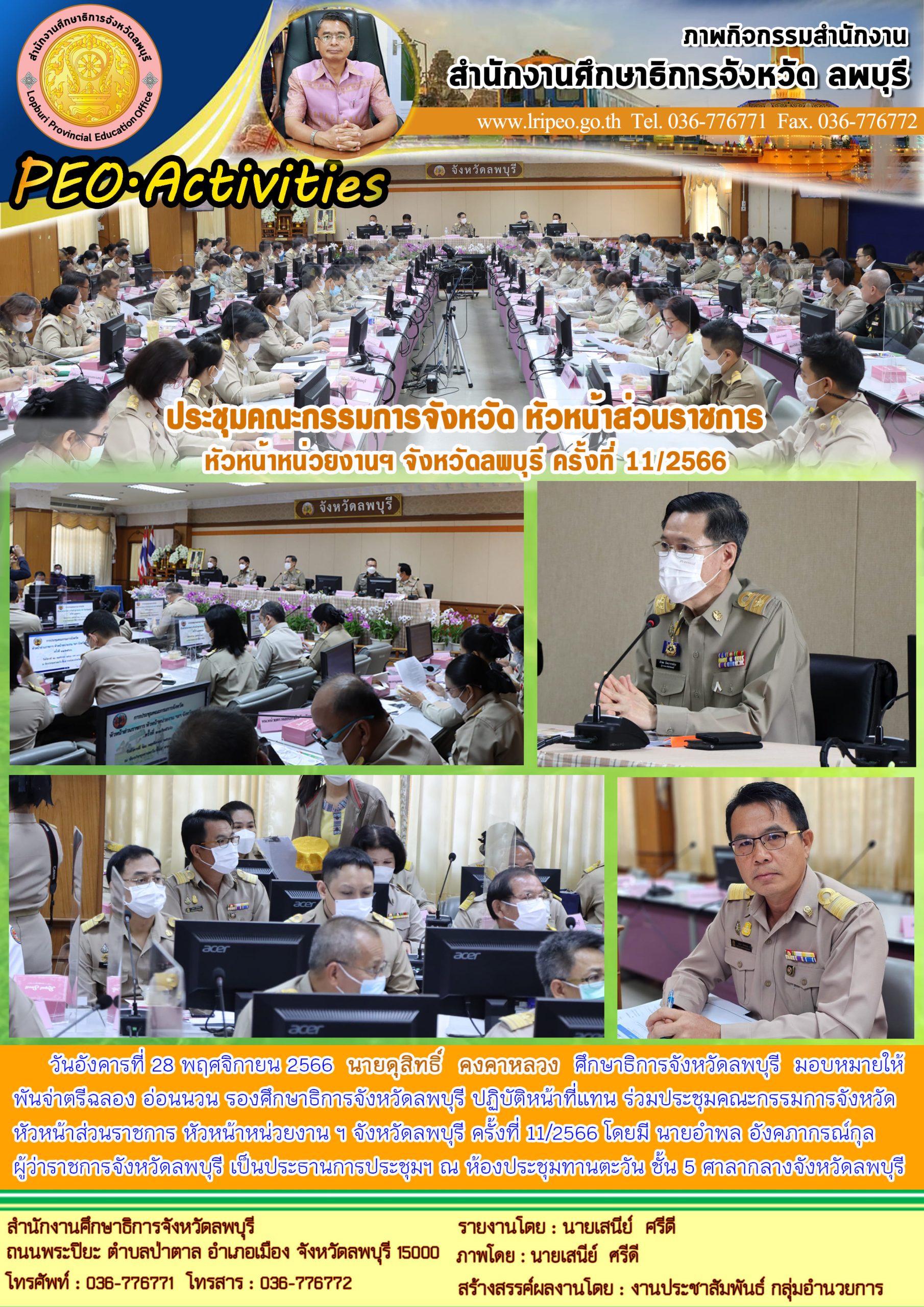 หัวหน้าส่วนราชการ หัวหน้าหน่วยงาน ฯ จังหวัดลพบุรี ครั้งที่ 11/2566 โดยมี นายอำพล อังคภากรณ์กุล