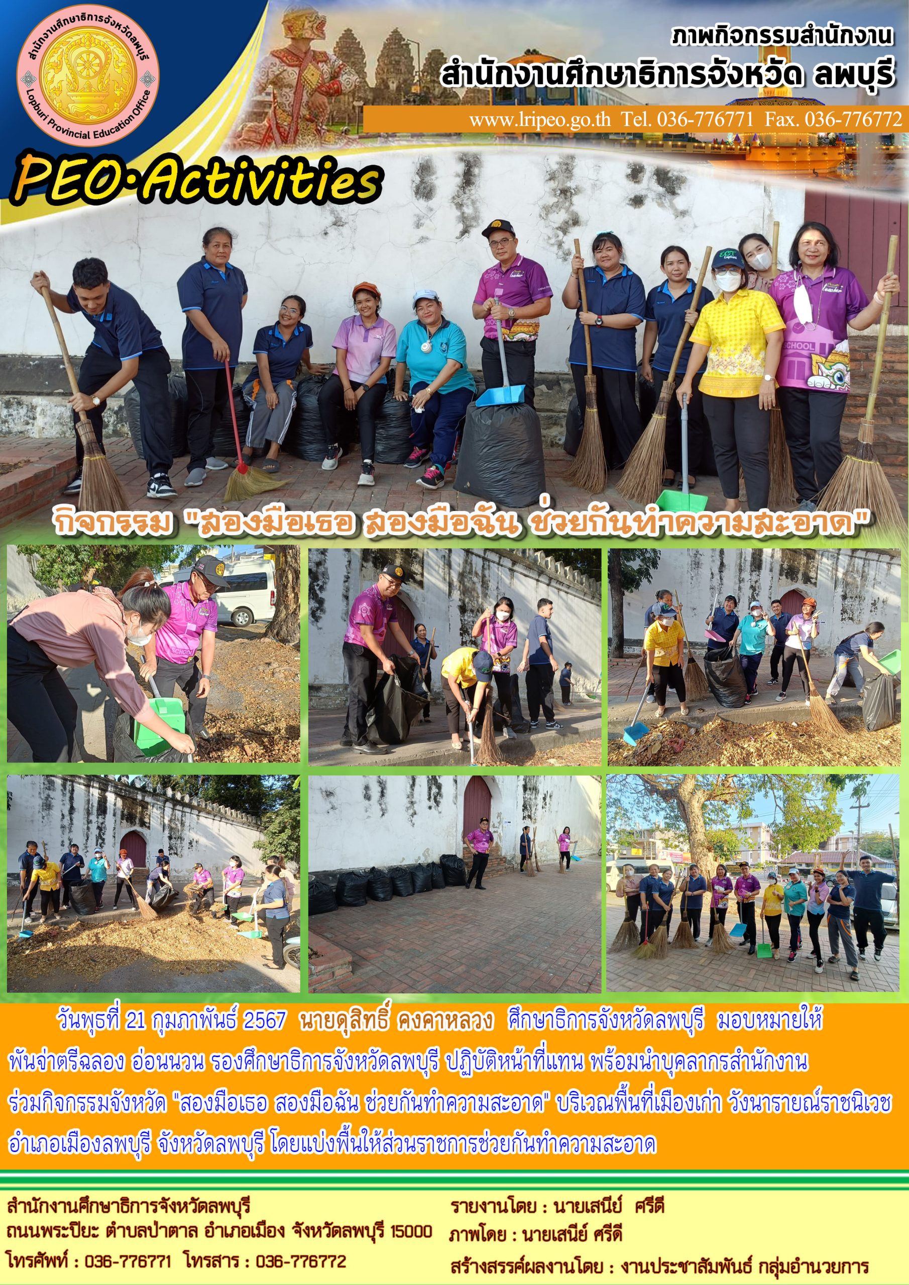 ร่วมกิจกรรมจังหวัด “สองมือเธอ สองมือฉัน ช่วยกันทำความสะอาด” บริเวณพื้นที่เมืองเก่า วังนารายณ์ราชนิเวช อำเภอเมืองลพบุรี