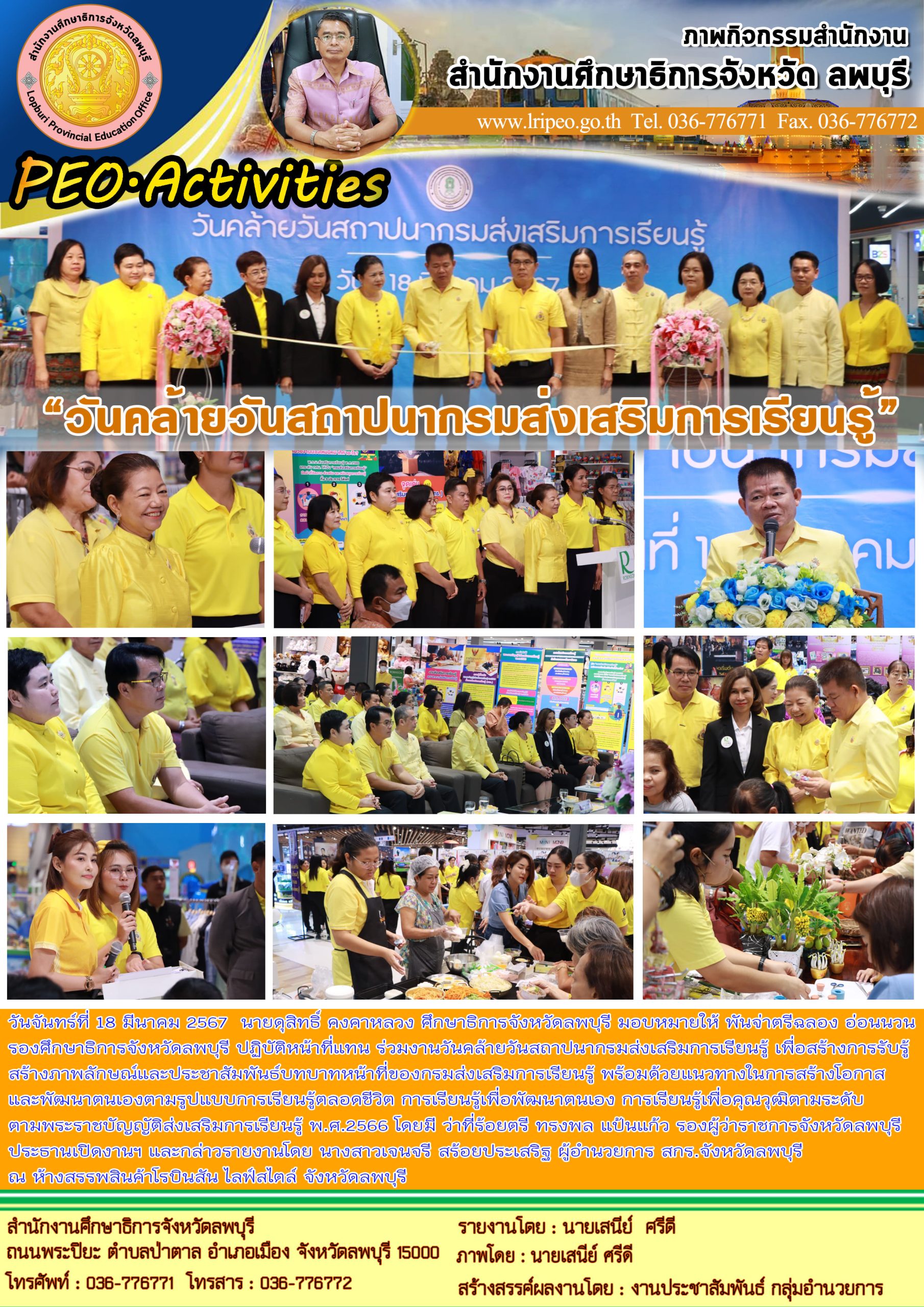 ตามพระราชบัญญัติส่งเสริมการเรียนรู้ พ.ศ.2566 โดยมี ว่าที่ร้อยตรี ทรงพล แป้นแก้ว รองผู้ว่าราชการจังหวัดลพบุรี