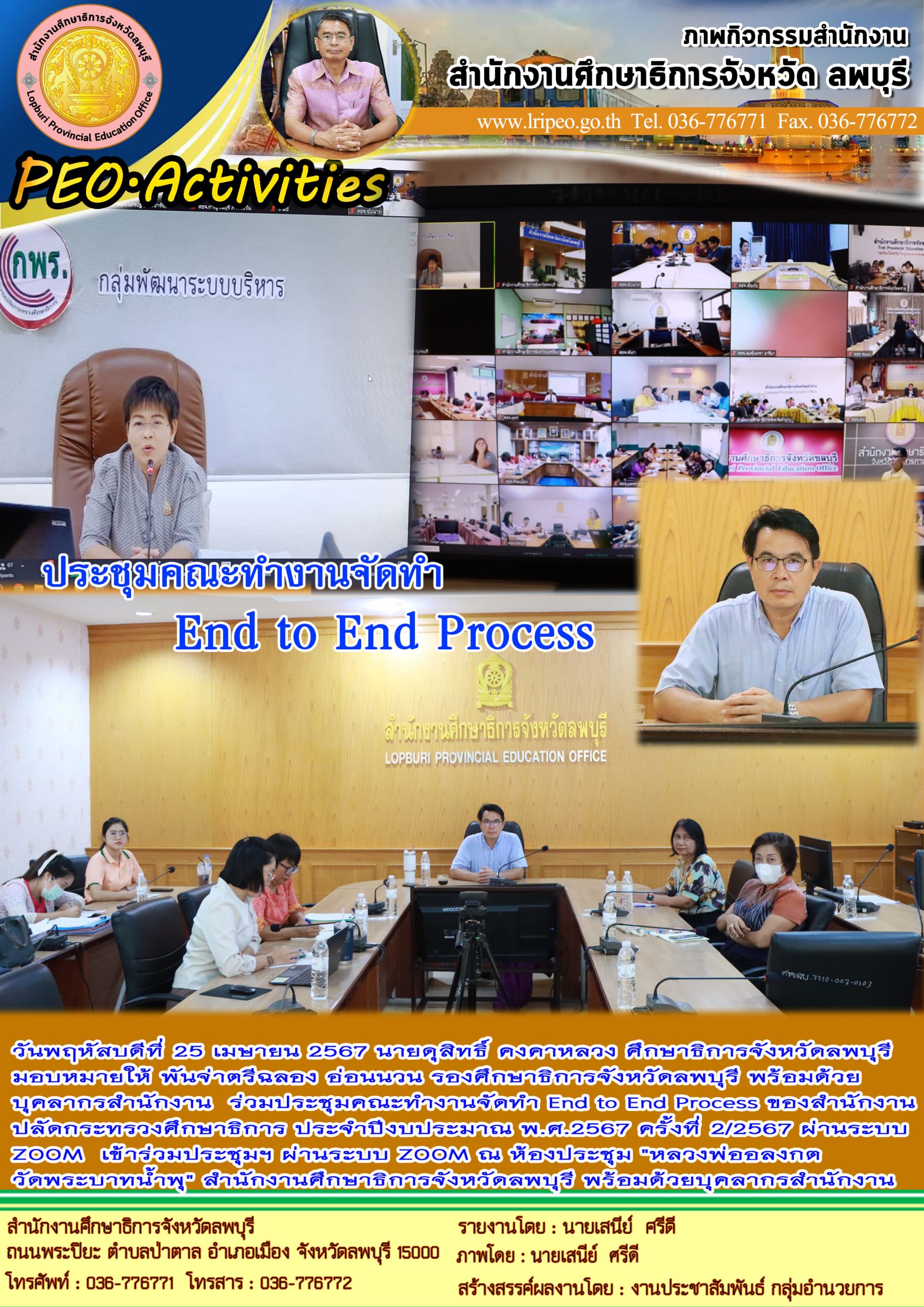 วันพฤหัสบดีที่ 25 เม.ย. 67 เวลา 09.00 น. นายดุสิทธิ์ คงคาหลวง มอบหมายให้ พันจ่าตรีฉลอง อ่อนนวน รองศึกษาธิการจังหวัดลพบุรี ปฏิบัติหน้าที่แทน ร่วมประชุมคณะทำงานจัดทำ End to End Process ของสำนักงานปลัดกระทรวงศึกษาธิการ ประจำปีงบประมาณ พ.ศ.2567 ครั้งที่ 2/2567 ผ่านระบบ ZOOM เข้าร่วมประชุมฯ ผ่านระบบ ZOOM ณ ห้องประชุม “หลวงพ่ออลงกต วัดพระบาทน้ำพุ” สำนักงานศึกษาธิการจังหวัดลพบุรี พร้อมด้วยบุคลากรสำนักงาน