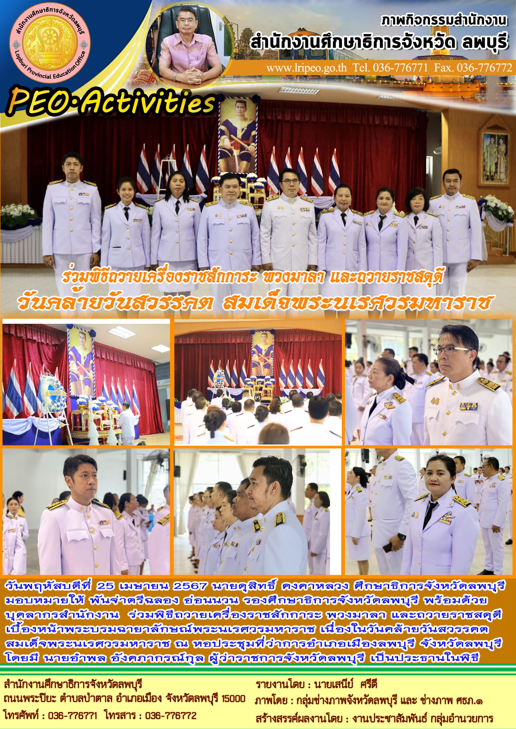 วันพฤหัสบดีที่ 25 เมษายน 2567 นายดุสิทธิ์ คงคาหลวง ศึกษาธิการจังหวัดลพบุรี