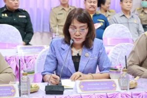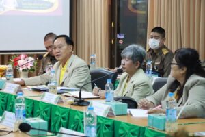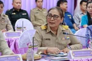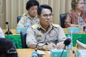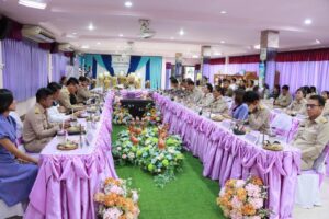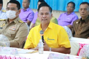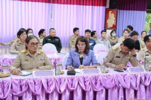 นายอำพล อังคภากรณ์กุล ผู้ว่าราชการจังหวัดลพบุรี กล่าวต้อนรับ และมีผู้เข้าร่วมรับฟังการตรวจเยี่ยมฯ สพป.ลพบุรี เขต 1, สพป.ลพบุรี เขต 2, นายอำเภอ, ผู้บริหารสถานศึกษา ครู และหัวหน้าส่วนราชการ