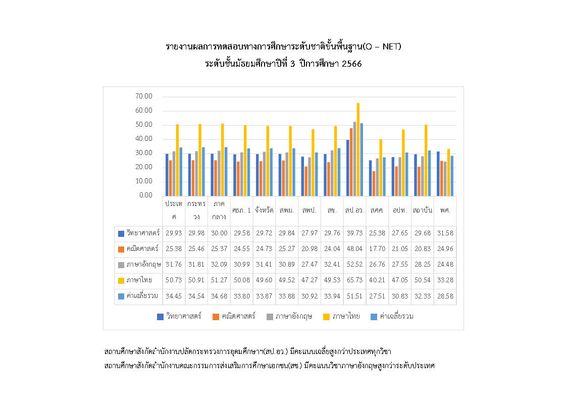 Home เอกสารกลุ่ม เอกสารกลุ่มนิเทศติดตามและประเมินผล รายงานผลการทดสอบทางการศึกษาระดับชาติขั้นพื้นฐาน (O-NET) ปีการศึกษา 2566
